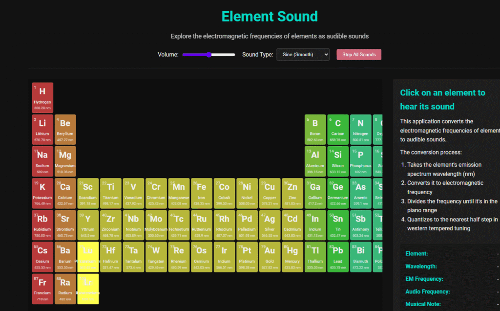 Educators can use this Periodic Table with Sound that was created with Manus AI. (Element Sound – Periodic Table Audio Explorer)
